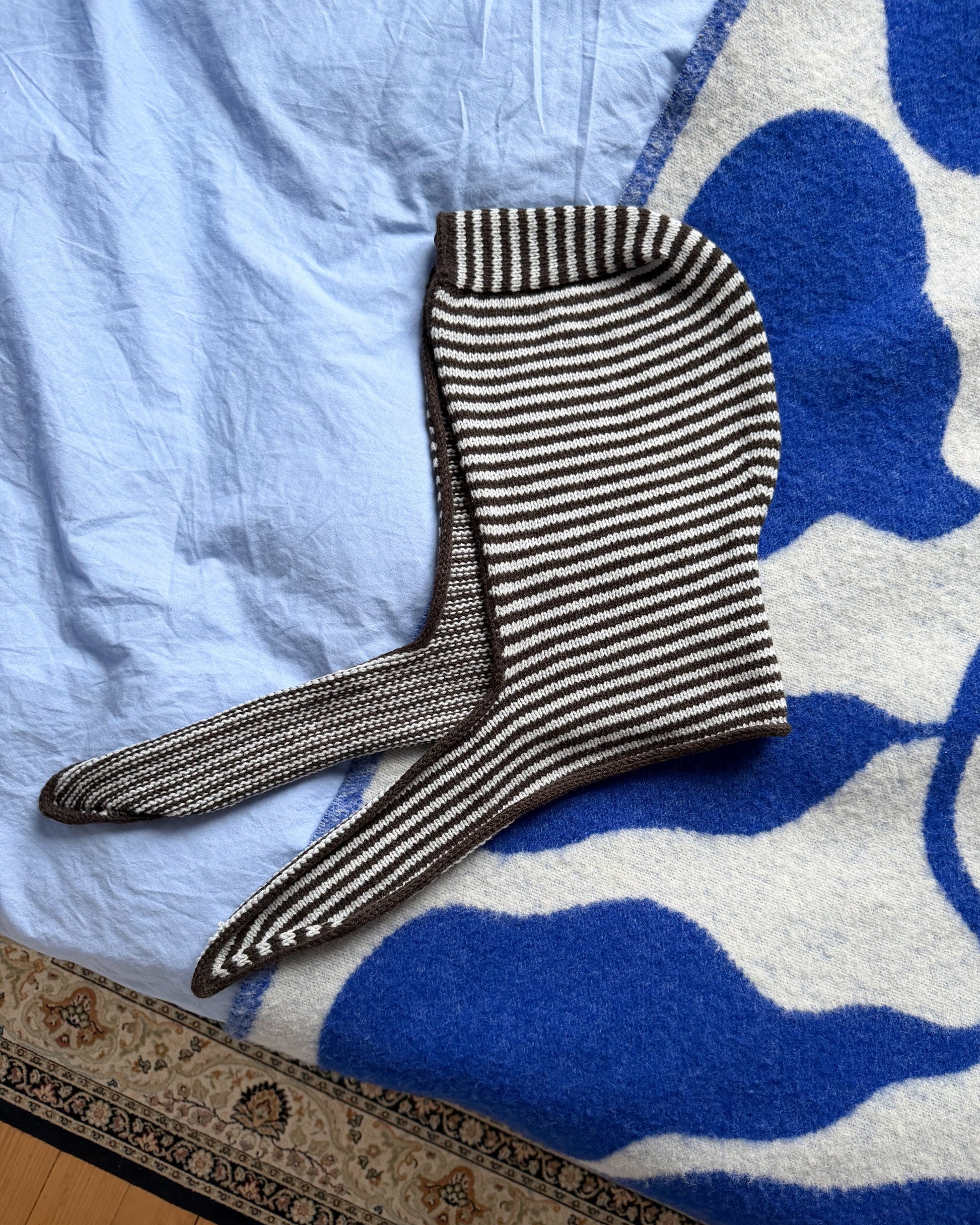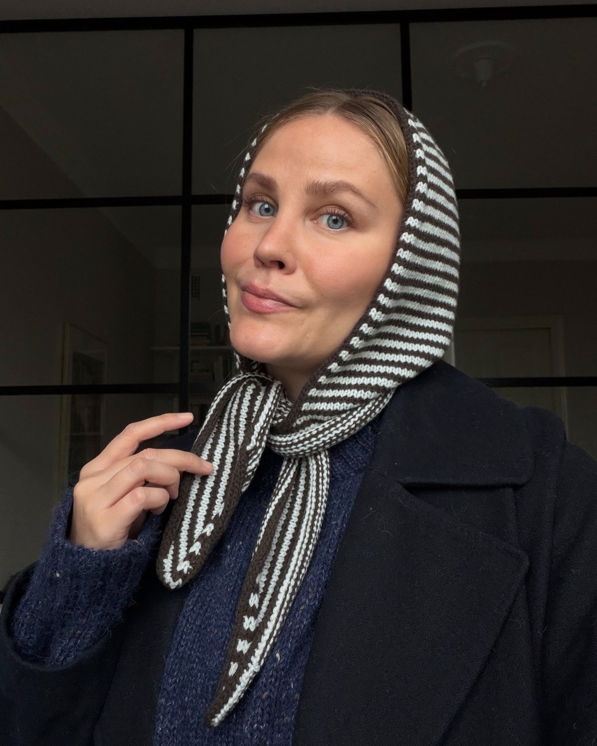 Lotte Hood is a playful striped hood with a cute little scarf. Knitted in merino wool, it keeps you warm on chilly days. The hood is worked from top down with narrow stripes. A neat i-cord edge finishes the look. The scarf can be tied either to the front or the back so you can style it just the way you like.